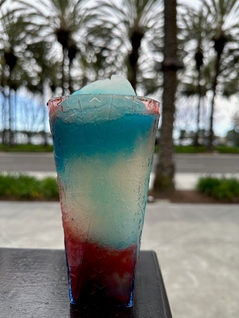 Celebrate with our Red, White, & Blue Frozen Margarita in our Souvenir Shaker