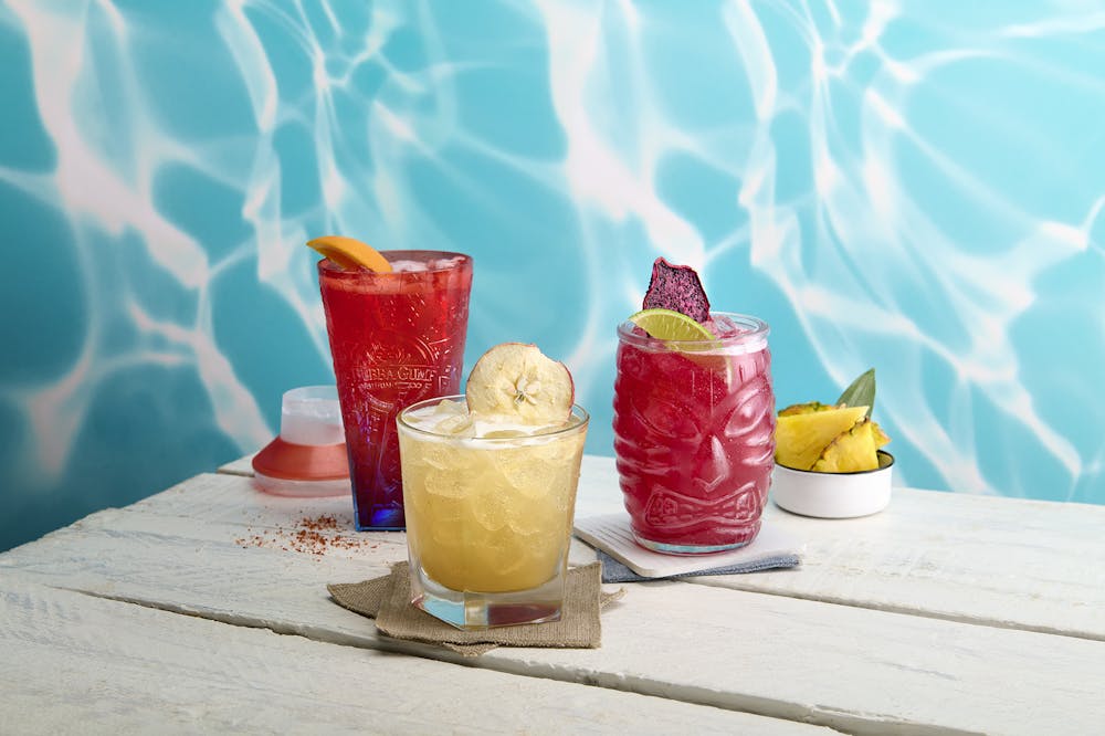 Don Q Pasion Rum, desert pear simple syrup, raspberry puree, pineapple juice, sweet and sour mix (Tiki Glass Included)